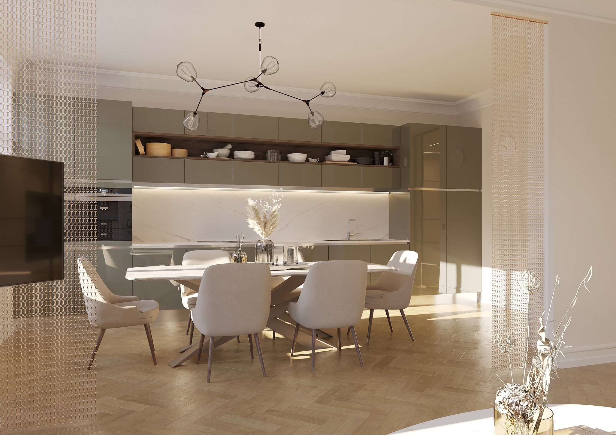 Wie bringt man das volle Potenzial einer sanierungsbedürftigen Altbauwohnung in einer der besten Lagen Münchens zum Vorschein? Mit einem durchdachten Interior-Design-Konzept haben wir eine klare gestalterische Vision geschaffen, die den gesamten Modernisierungsprozess gezielt lenkte. Um diese Vision greifbar zu machen, entwickelten wir hochwertige Architekturvisualisierungen, die nicht nur den Handwerkern als präzise Orientierung dienten, sondern auch die frühzeitige Vermarktung der Immobilie ermöglichten.